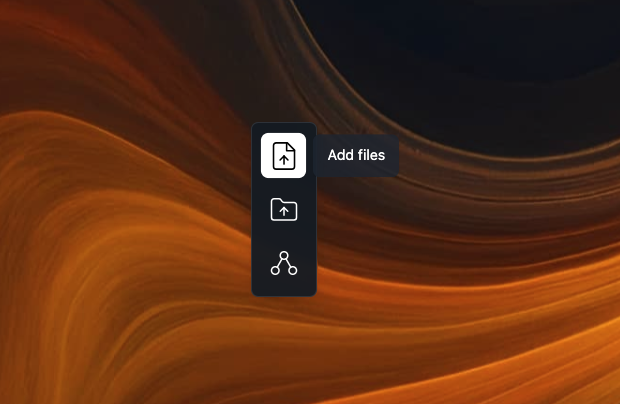 Cliquez sur le bouton « fichiers » ou faites glisser vos fichiers pour les déposer sur l'écran. Cliquez sur le bouton « Dossiers » pour uploader un dossier et son contenu.